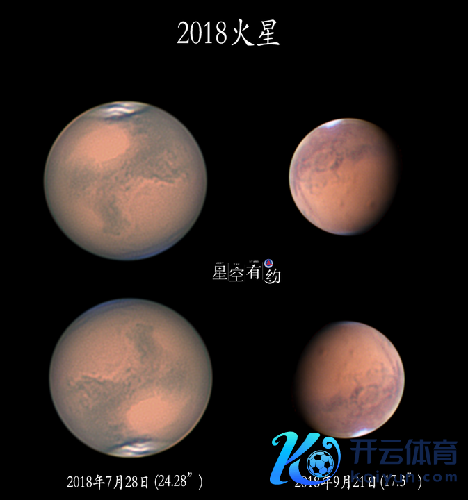 2018年7月和9月在广东深圳罗湖拍摄的火星(拼版)。(黄永雄摄)